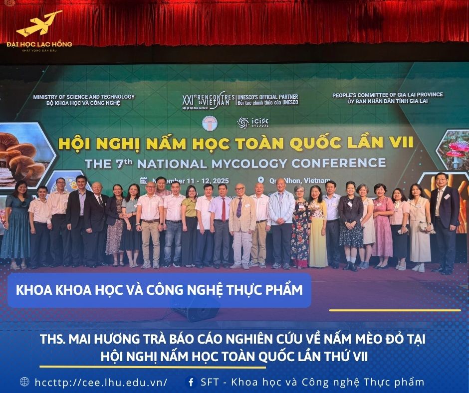 Trong không khí học thuật sôi nổi, ThS. Mai Hương Trà, giảng viên Khoa Khoa học và Công nghệ thực phẩm, Đại học Lạc Hồng, đã trình bày báo cáo chuyên đề “Đánh giá khả năng nuôi trồng Nấm Mèo Đỏ tại rừng Nam Cát Tiên”. Nghiên cứu thu hút sự quan tâm nhờ đề cập nguồn gen bản địa quý, đồng thời mở ra hướng khai thác và phát triển giống nấm tiềm năng của Việt Nam.