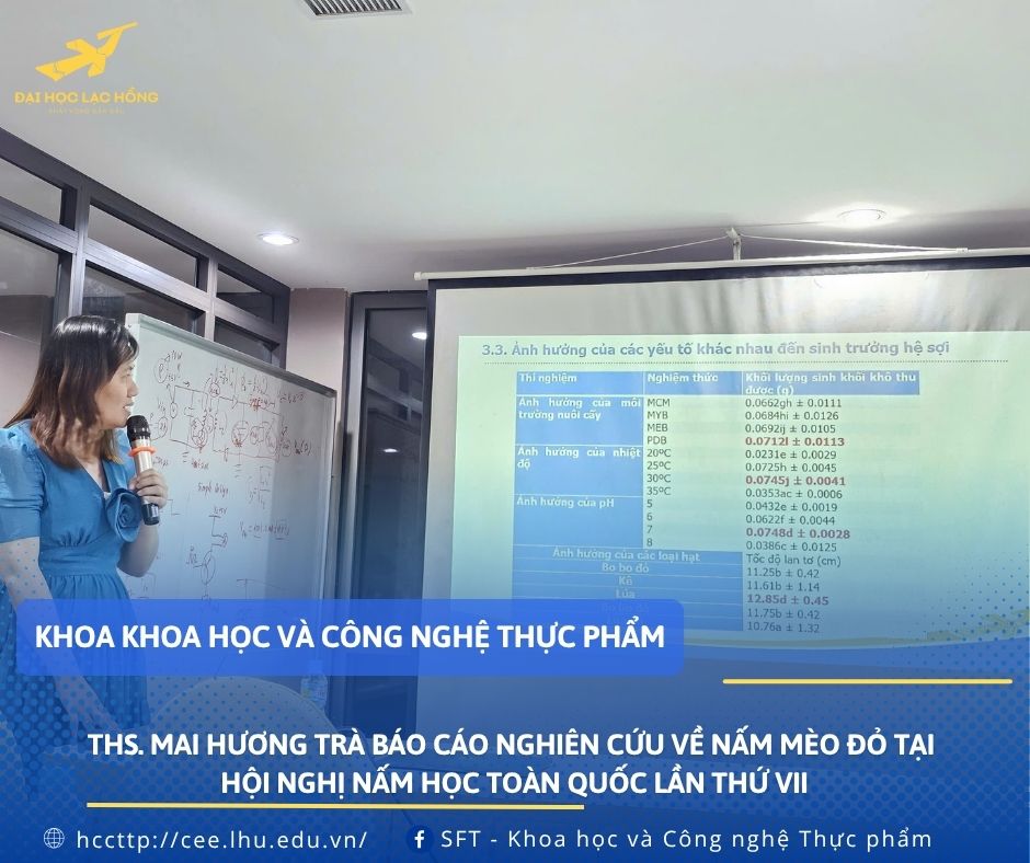 Khoa Khoa học và Công nghệ thực phẩm - ThS. Mai Hương Trà báo cáo tại Hội nghị Nấm học toàn quốc lần thứ 7 với nghiên cứu Nấm Mèo Đỏ