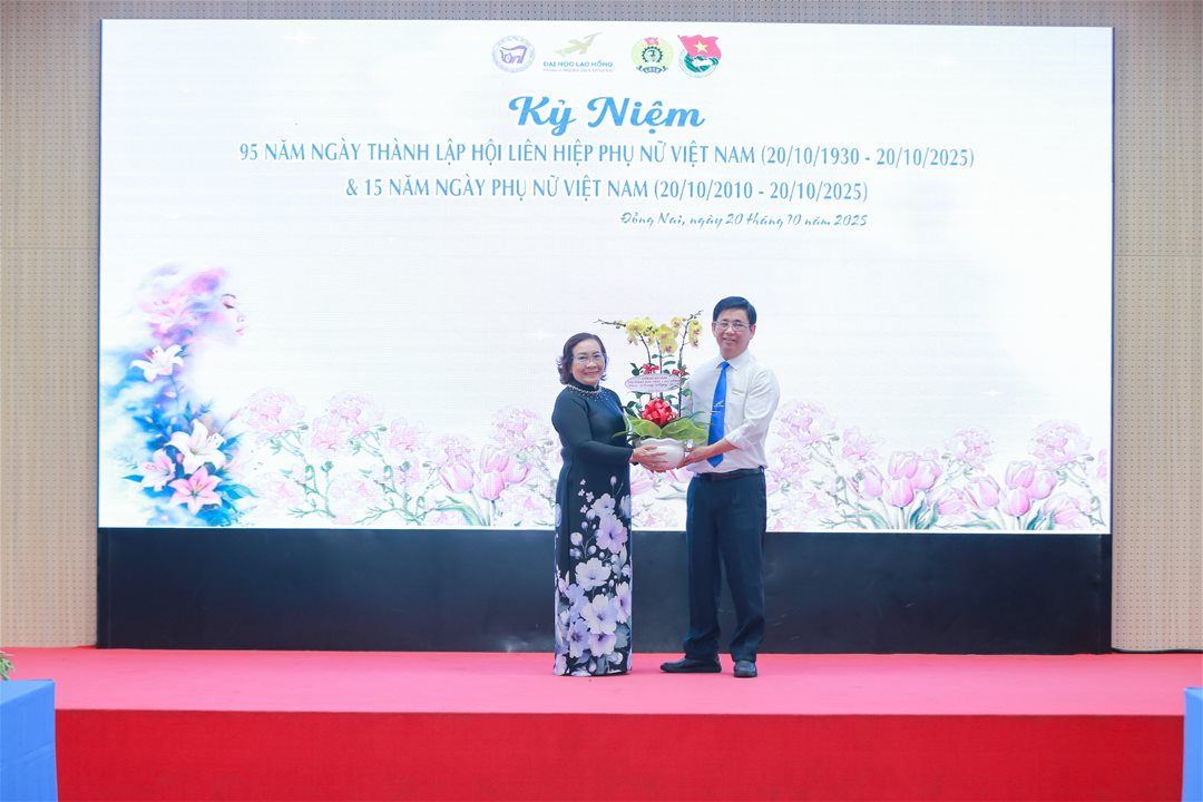 Hòa trong không khí cả nước chào mừng 95 năm Ngày thành lập Hội Liên hiệp Phụ nữ Việt Nam (20/10/1930 – 20/10/2025) và 15 năm Ngày Phụ nữ Việt Nam (20/10/2010 – 20/10/2025), sáng ngày 20/10/2025, tại Hội trường A301 – Cơ sở 1, Công đoàn Trường Đại học Lạc Hồng phối hợp cùng Chi hội Nữ tri thức và Đoàn Thanh niên đã tổ chức chương trình kỷ niệm đầy ý nghĩa nhằm tri ân, tôn vinh vai trò của phụ nữ trong xã hội hiện đại.
