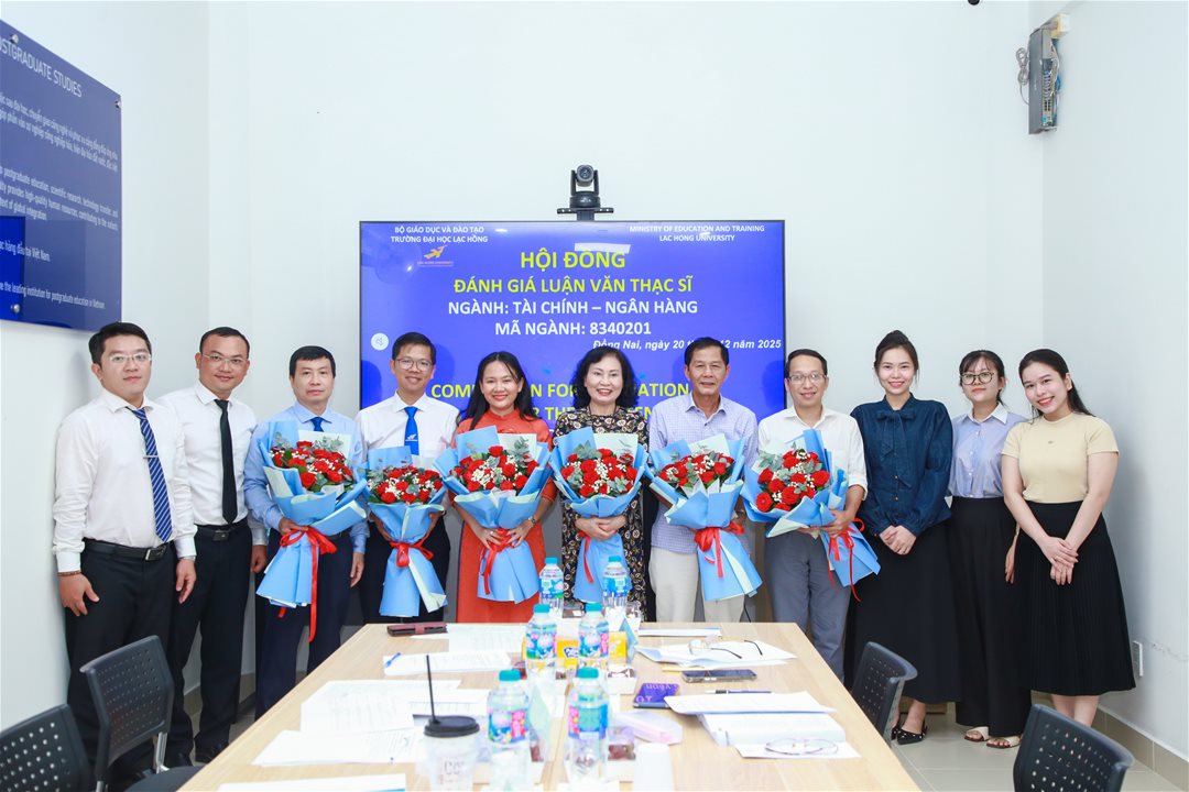 Ngày 20 tháng 12 năm 2025, tại phòng B107 (Phòng tiến sĩ) cơ sở 1 của Trường Đại học Lạc Hồng (LHU), Hội đồng đánh giá luận văn thạc sĩ chuyên ngành Tài chính - Ngân hàng đã tổ chức buổi bảo vệ luận văn cho 05 học viên. Buổi lễ diễn ra trong không khí trang trọng và đầy tính học thuật, với sự tham gia của các nhà khoa học, giảng viên uy tín và các chuyên gia đầu ngành.