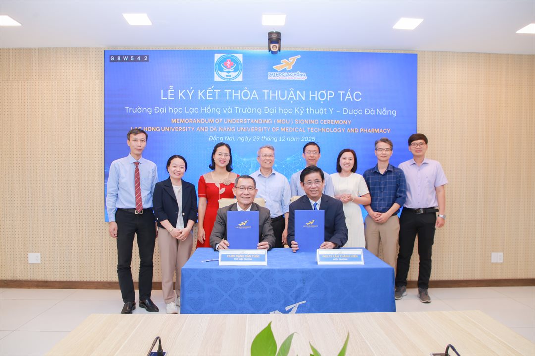 Trường Đại học Lạc Hồng (LHU) và Trường Đại học Kỹ thuật Y – Dược Đà Nẵng đã ký kết bản ghi nhớ hợp tác vào ngày 29/12/2025 tại Trường Đại học Lạc Hồng, nhằm thúc đẩy hợp tác đào tạo, nghiên cứu và đảm bảo chất lượng giáo dục.