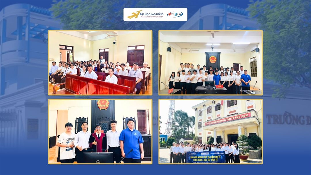 Bên cạnh những buổi học lý thuyết trên, các bạn sẽ được trải nghiệm các buổi học tập chuyên đề, hội thảo, talkshow hay những buổi học tập thực tế tại Tòa án. Trong năm học, Khoa Quản trị - Kinh tế quốc tế phối hợp cùng quý giảng viên của ngành Luật và câu lạc bộ để tổ chức nhiều chương trình với nhiều chuyên đề pháp luật với sự tham gia của các diễn giả là những người có dày dặn kinh nghiệm và đã hoạt động lâu năm trong lĩnh vực pháp luật đến chia sẻ, thuyết giảng để chúng ta có nhiều góc nhìn hơn, đặc biệt là học hỏi kinh nghiệm quý báu và những lời khuyên hữu ích từ họ để phục vụ cho việc học cũng như định hướng nghề nghiệp sau này của chúng ta. Hơn thế, nhà trường và khoa cùng giảng viên ngành Luật cũng tạo điều kiện cho sinh viên được tiếp cận những vụ án thực tế để củng cố kiến thức bằng cách cho sinh viên đến dự buổi xét xử tại tòa án. Từ những buổi tham quan đó chúng ta sẽ tiếp nhận thêm nhiều hiểu biết mới về quy trình xét xử một vụ án tại phiên tòa, không khí của phiên tòa đó như thế nào, tâm lý của họ sẽ ra sao thay vì chỉ nghe qua lời kể của giảng viên hay đọc trên báo, xem trên tivi thì khi học ở trường Đại học Lạc Hồng bạn sẽ được tận mắt chứng kiến buổi xét xử và đó sẽ là trải nghiệm thú vị mà các bạn chắc chắn không thể nào bỏ lỡ.
