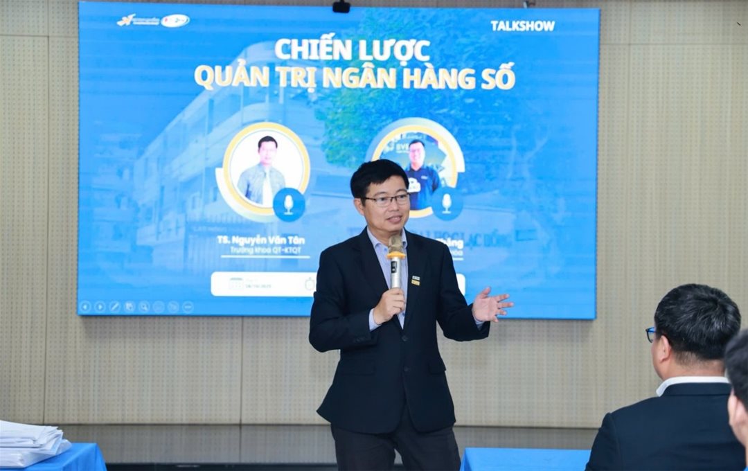 Về phía Khoa Quản trị – Kinh tế quốc tế: TS. Nguyễn Văn Tân – Trưởng Khoa, người đã mang đến góc nhìn học thuật sâu sắc về bức tranh toàn cảnh của chuyển đổi số trong ngành ngân hàng hiện nay và tương lai.