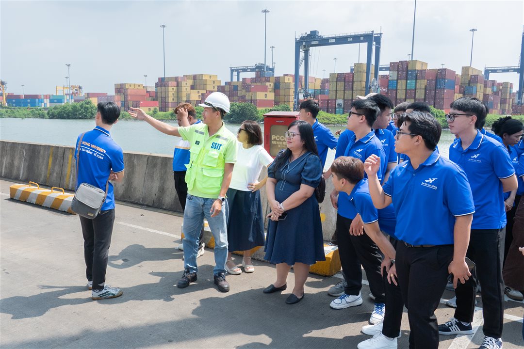Đoàn tham quan do cô Nguyễn Thị Bạch Tuyết và giảng viên Khoa TCKT phụ trách. Tại Cảng SSIT, sinh viên được giới thiệu tổng quan về mô hình khai thác cảng container quốc tế, hệ thống thiết bị và công nghệ vận hành, quy trình điều độ – giám sát, kiểm soát an ninh và quản lý container.