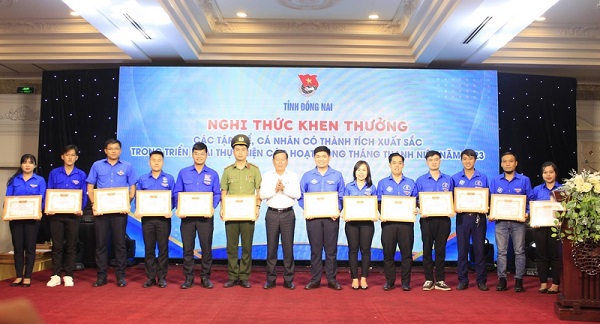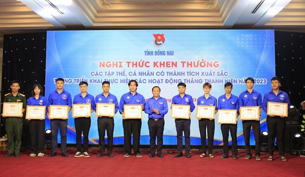 Representing LHU's Youth Union, Secretary Truong Le Bao Trinh (sixth, from right) received certificate of merit at the Youth Month closing conference held by the Dong Nai provincial Youth Union (Photo: Youth Union)