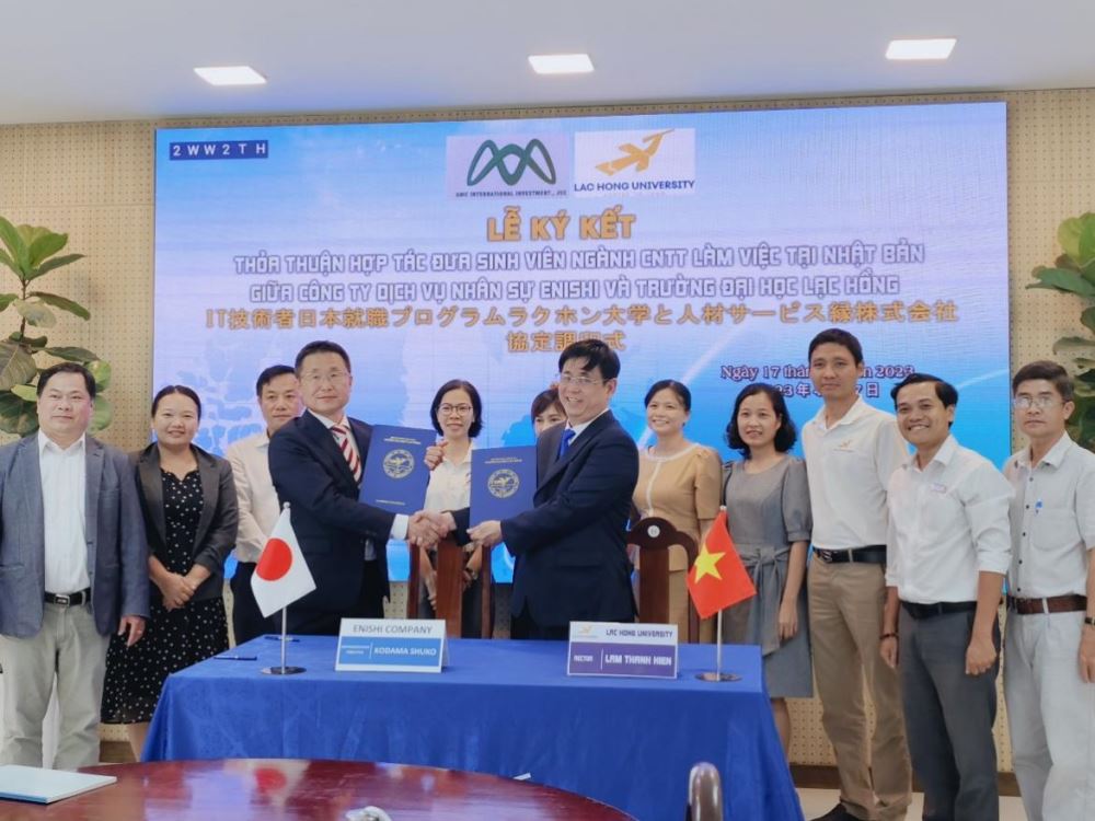 ENISHI Company specializes in providing personnel for Japanese businesses. It currently provides personnel for Japanese enterprises operating in IT industry. The Company looks forward to working with LHU to exchange cooperative programs and sign a MoU to send IT 4th-year students to work in Japan. Accordingly, IT students after graduation will be covered for one year of studying Japanese and have the opportunity to work at Japanese IT companies with a committed salary of 35 million VND/month.