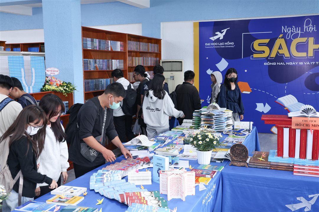 Students explore and learn about various books at the exhibition area during LHU Book Festival 2026